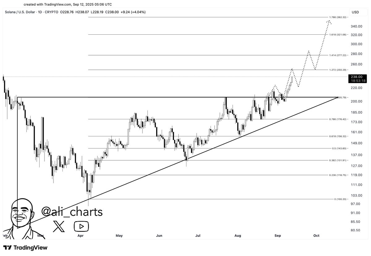 According to his analysis, the 0.618 Fibonacci retracement—often called the “golden pocket”—looms large as a definitive test of bullish strength. Failing to break above and flip this zone into support, Charting Guy cautions, could lead to an extended bearish phase.