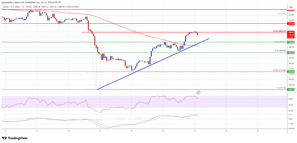On Friday, the altcoin jumped 11% from the pattern lows, briefly breaking out and hitting the $102 mark before retracing to the $96 mark. The cryptocurrency now hovers between the $98-$99 levels, just 1% below the pattern’s upper boundary.