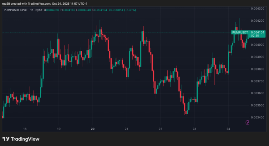 Following the news, Pump.fun’s token, PUMP, became one of the best-performing tokens in the past 24 hours, jumping 11.6% to a one-week high of $0.0043. The cryptocurrency has been trading within the $0.0036-$0.0046 price range since the early October correction.